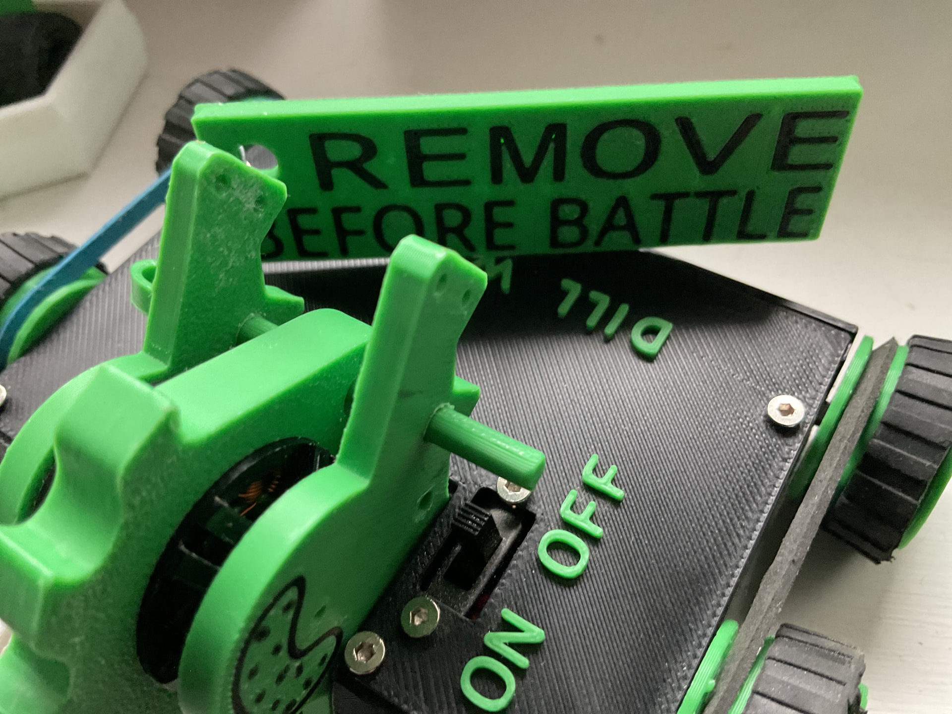 The bar bit is solid pla plus and it has a sign reading ‘remove before battle’ connected using a paper clip