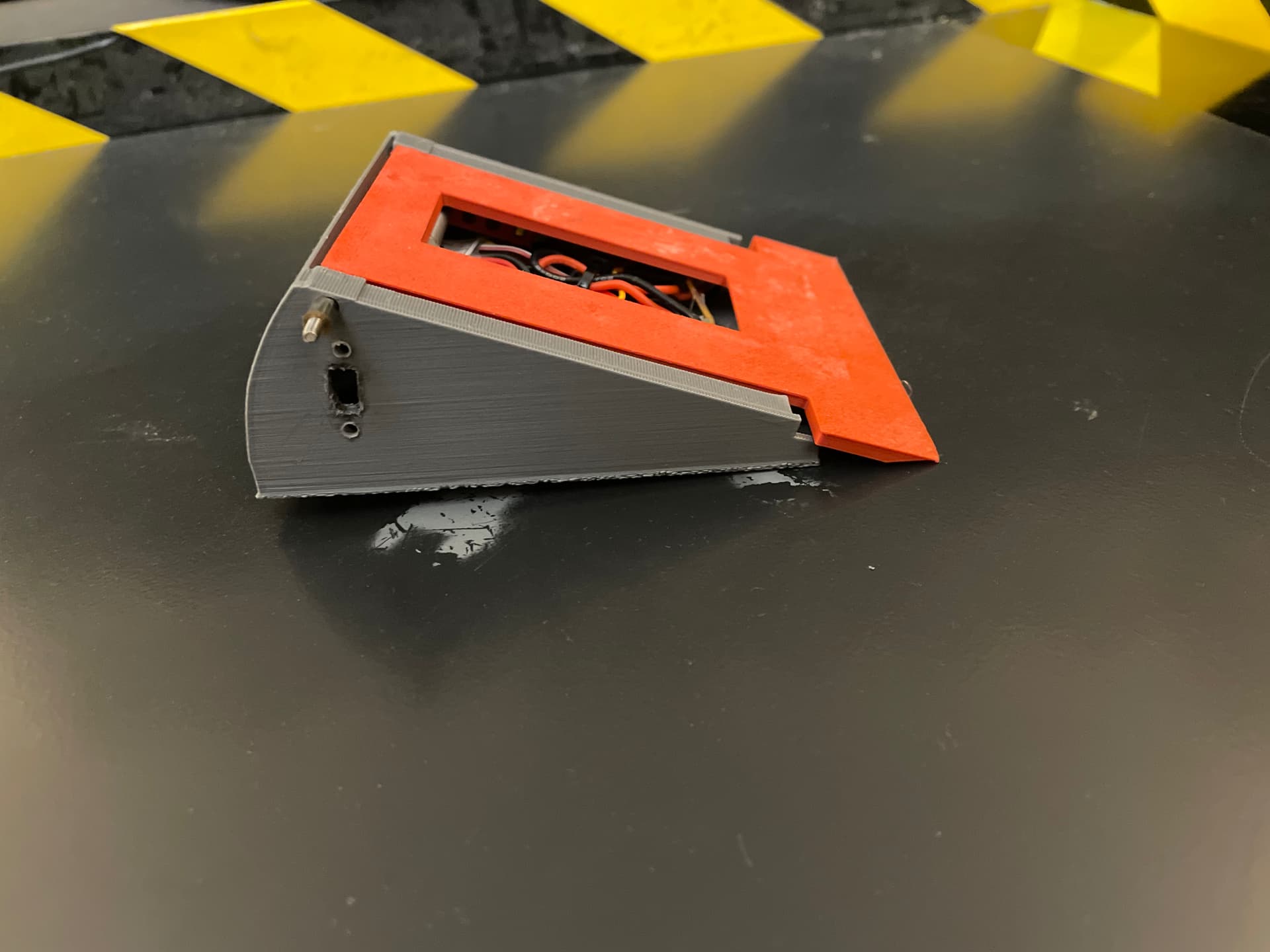 Anyway, I’ve made a flippy wedge thing tentatively either called “Battle Metal” or “Warlord” using mostly parts ordered from BBB (ESC, wheels, LED, switch, receiver), and tonight I got everything in the right place.