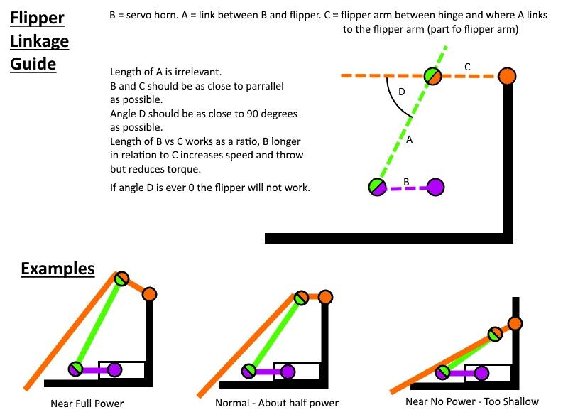 Wonder if there are any optimisations to be made to your flipper linkage to get a bit more throw distance and more torque? Of course the stronger servo will help with this too but may be handy to see the linkage design to help point at some potential future mods!
