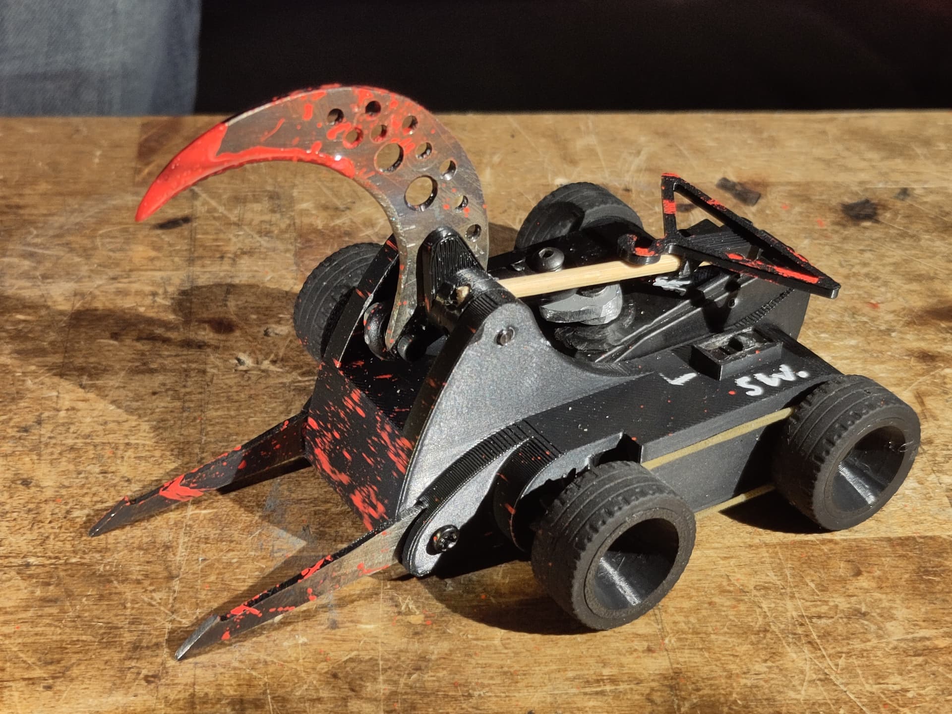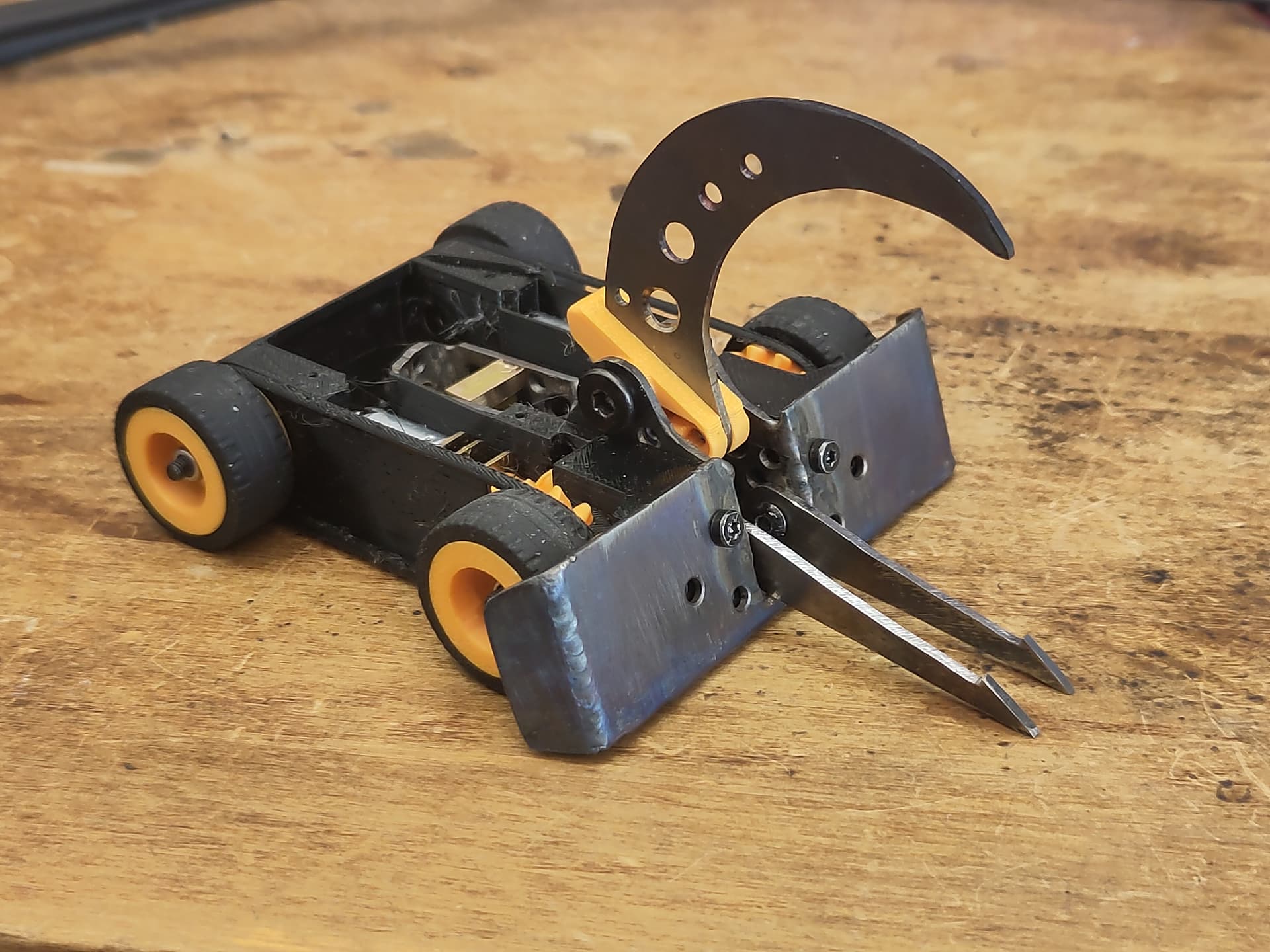 Finally, that titanium crusher arm wasn’t built for this bot. It was designed for an unnamed drillium titanium framed bot I was working on that was intended to use a lead screw N20 pulling some braided fishing line, but it didn’t quite work out. I don’t like posting unfinished bots because I need some motivation to finish them, but I thought since part of it is making an appearance the rest should too. I only built it because I made the wedge for Fatal Deviant but it was too heavy, and I didn’t want to waste it…