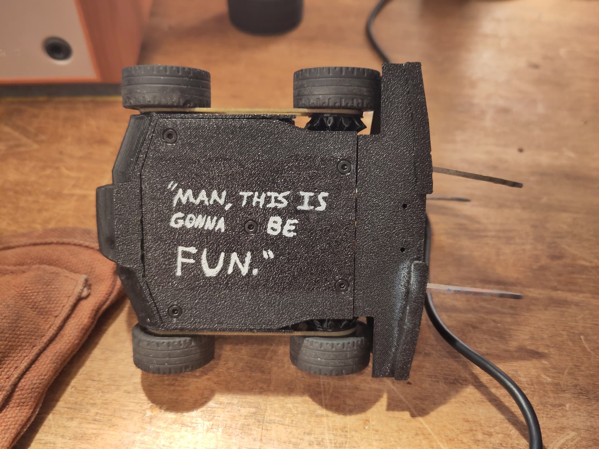 I’m also hoping to improve the drive further, these aliexpress N20s struggle to overcome the stiction in the bevel gears and belts at low speeds, so low speed control is a challenge. I’ll start by gearing them down a little, but I’ll likely end up swapping in some spicier N10s to save weight at the same time. With more power it’ll need more traction, so I’ll play with some different tyre options.