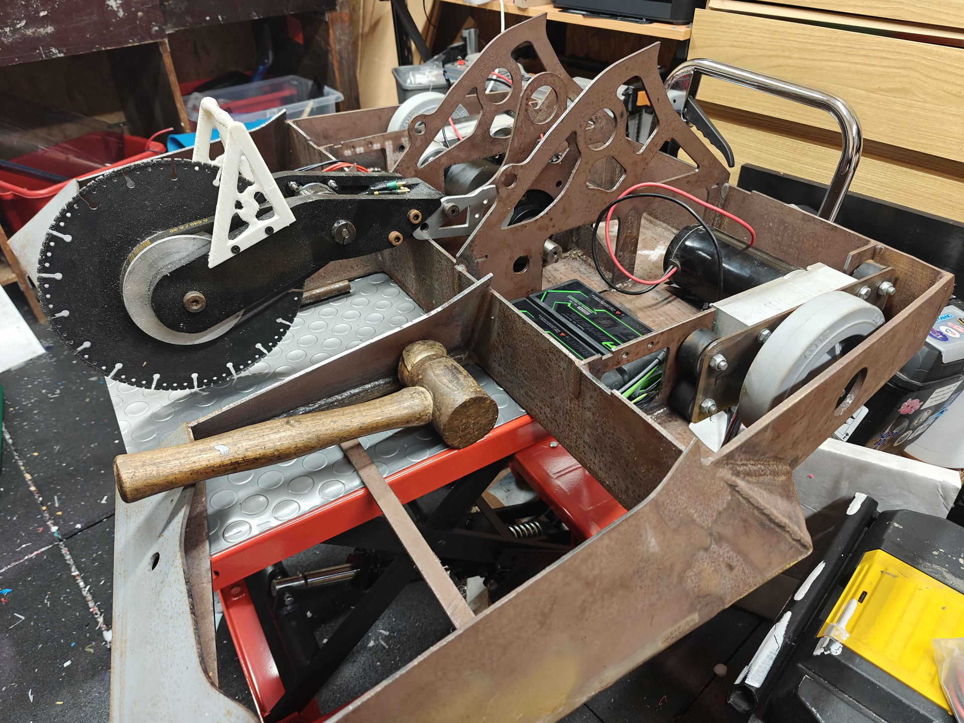 I bought this partial frame from another roboteer in 2021. It was intended for Series 11 of Robot Wars that never happened. I quickly discovered the difficulty in continuing someone else’s design language that doesn’t match your own, so shelved it and it has lived in a binbag down the side of my Mum’s house ever since.
