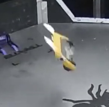 It got flipped, and couldn’t drive upside down, then was pushed down the pit. (the only win it got was against another robot without a srimech)