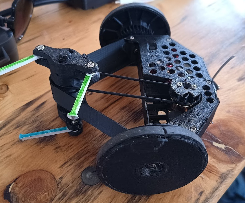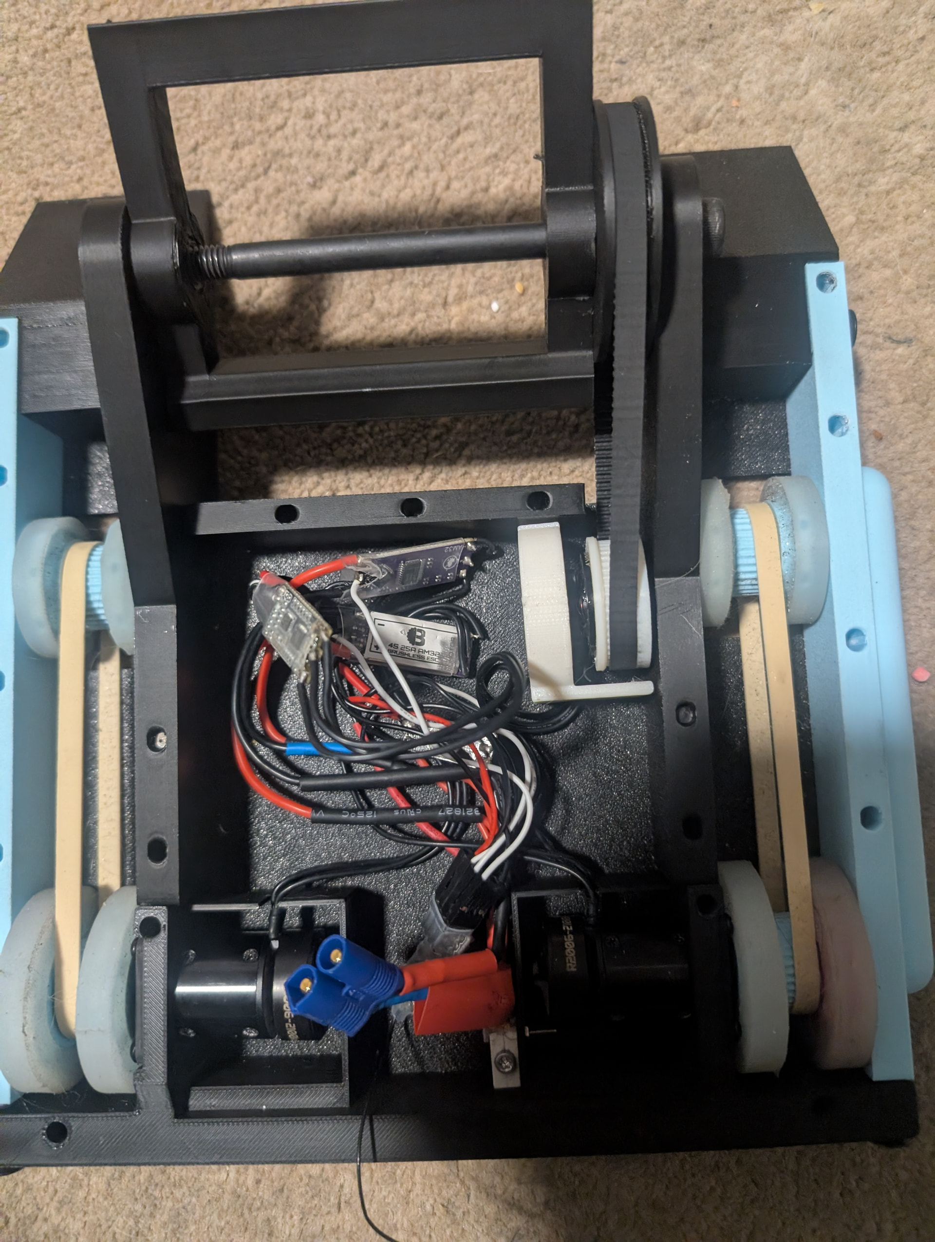 I also changed ratio on the belt drive to lower weapon RPM and reduce the torque needed on the motor. (torque is ~ proportional to current and current squared is proportional to power/heat)