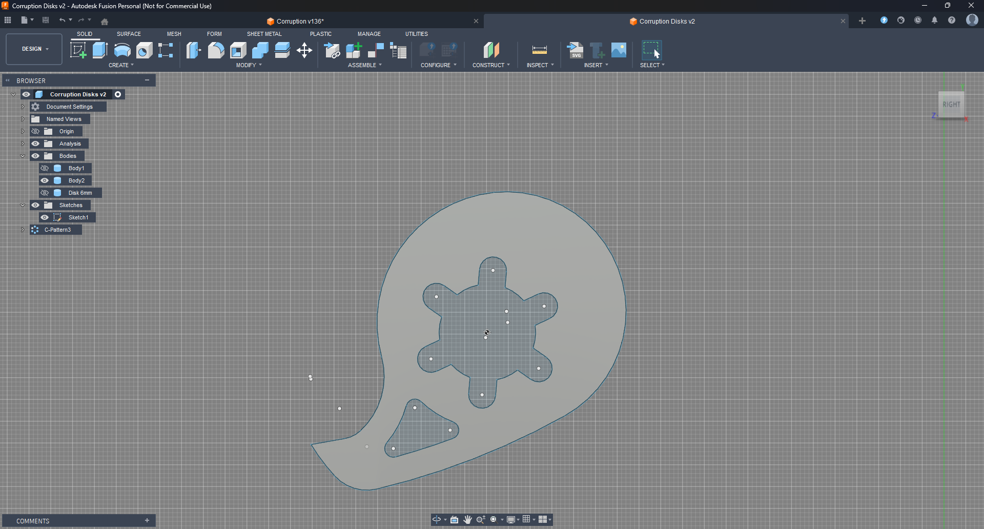Near the end of March, I settled on a different direction. After years of wanting to give spinners a shot, I figured, why not now? This was an early version of the CAD. The design went through a few changes as I prototyped the design with 3D printed mockups.