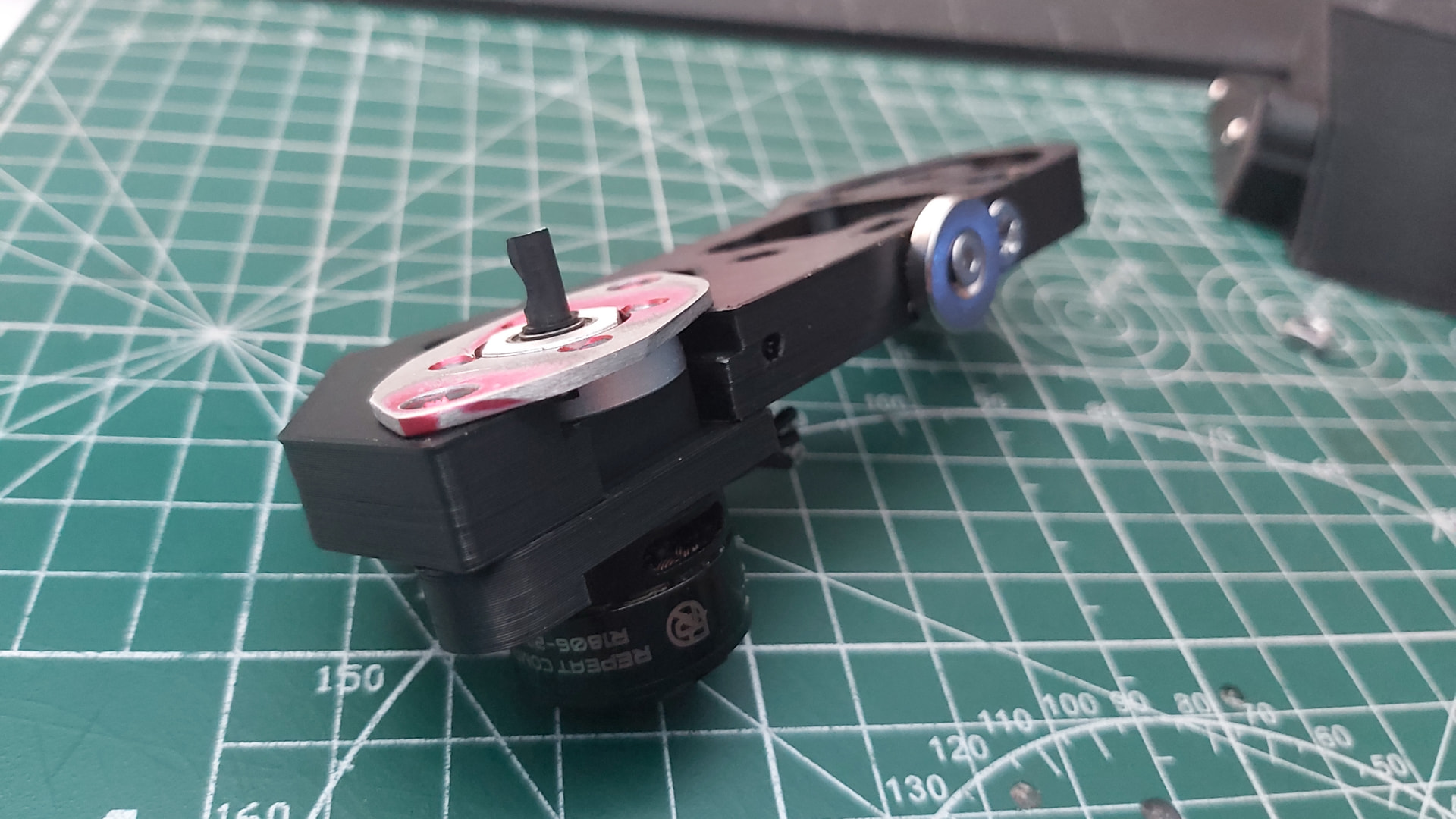 Originally, I planned to have an aluminium hub for the weapon, but I was convinced to try a TPU hub with embedded spacers to save money on machining.