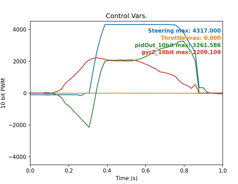 sprintf(msg.txt, "S:%d T:%d FL:%d FR:%d GY:", rxFrame.steering, rxFrame.throttle, driveVals.FL.duty, driveVals.FR.duty);