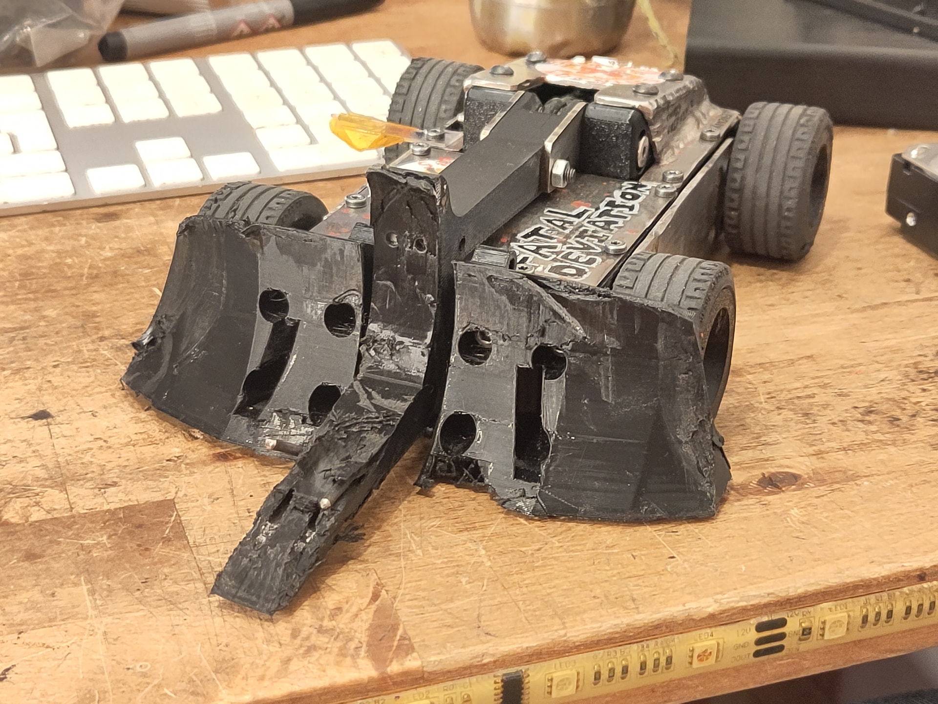 While I’ll be the first to admit my solution is pretty extra, I think there’s a lot of utility in something simpler like an Arduino Nano wrapped in heatshrink; used for advanced control mixing your transmitter might not be able to handle, or to trigger canned movements on multiple servo channels with a single transmitter switch, or deadbug an IMU module to the back to detect which way up the robot is driving and invert the controls.