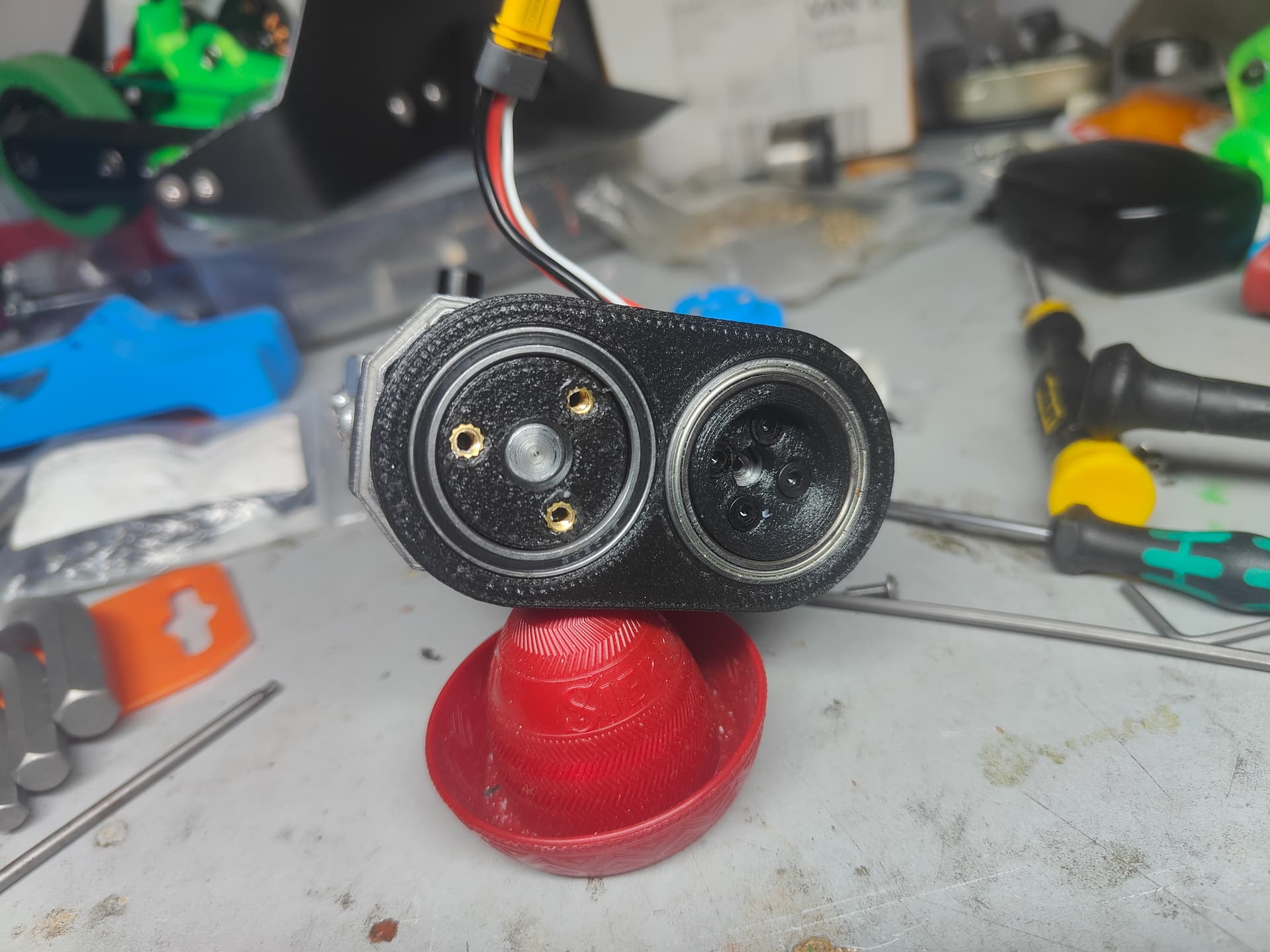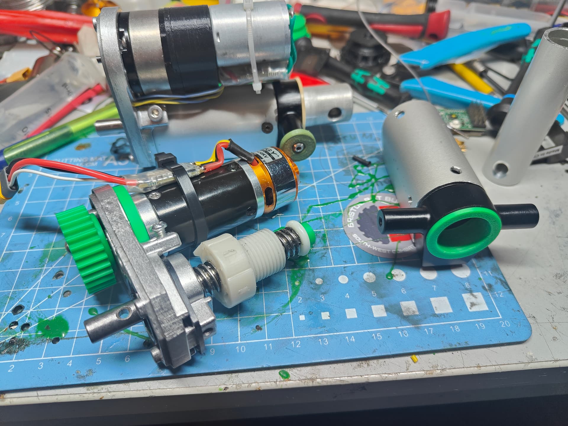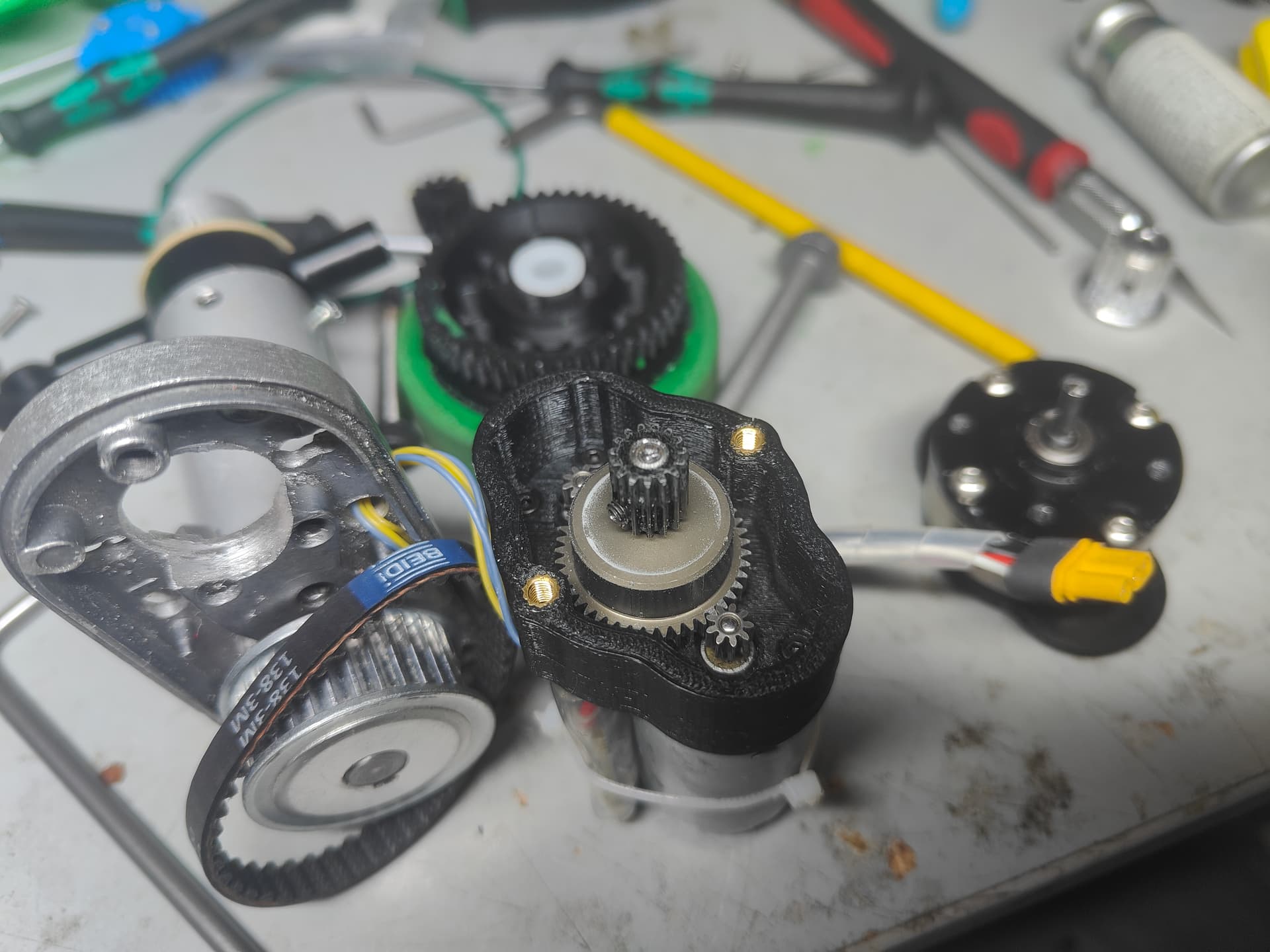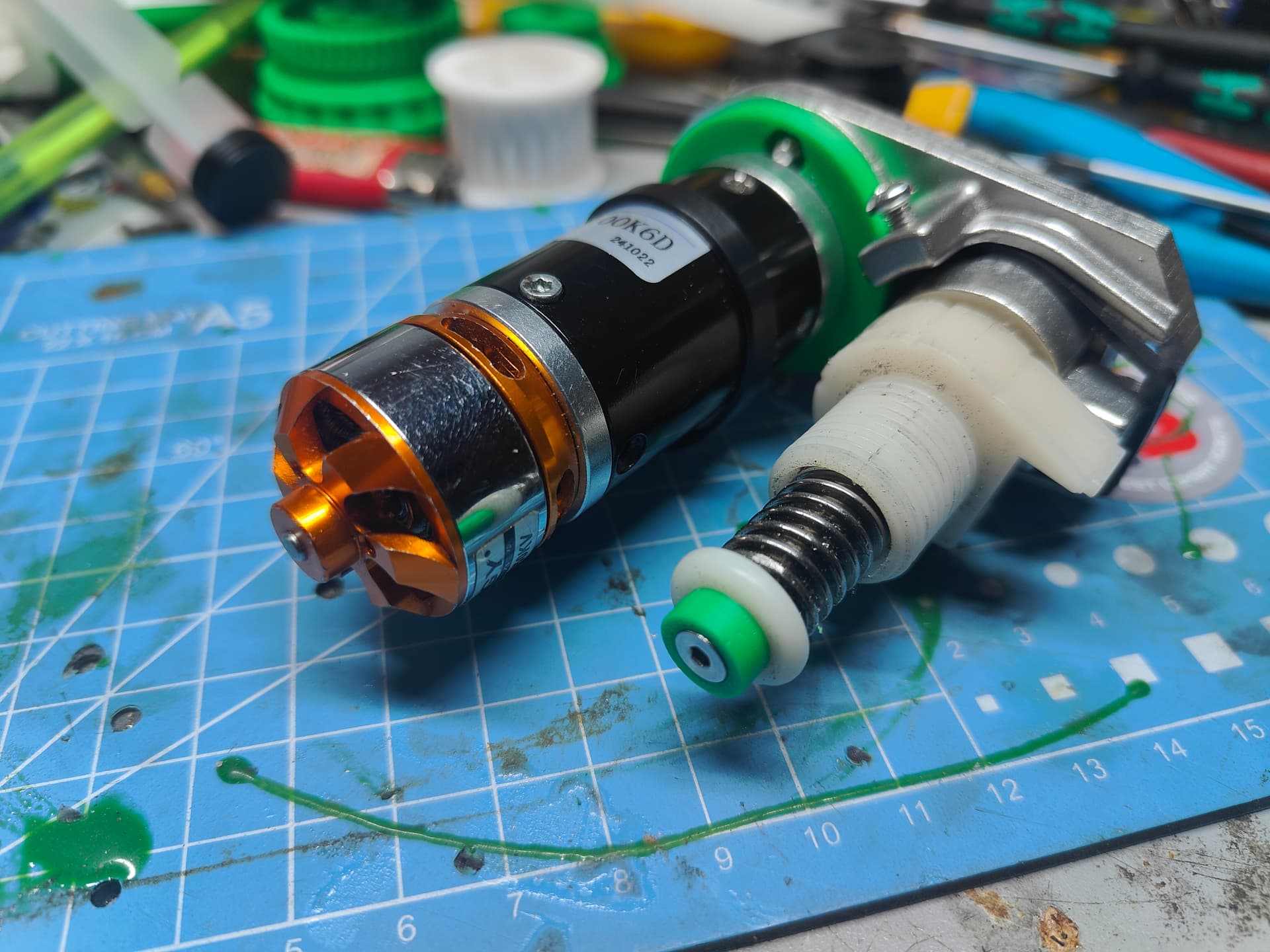 The two actuators side by side. Two very different approaches made many months apart. The second brushless one is honestly nicer despite its unbrilliant design, presumably because I knew what I was doing.