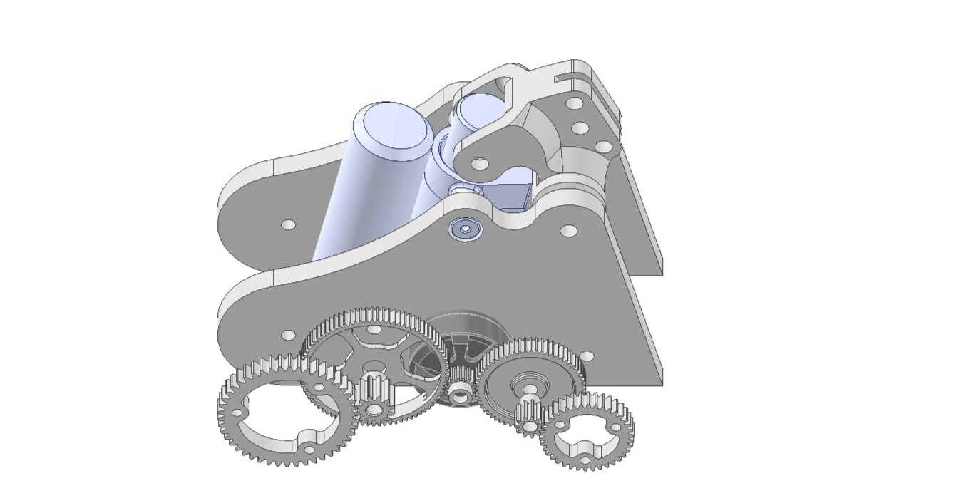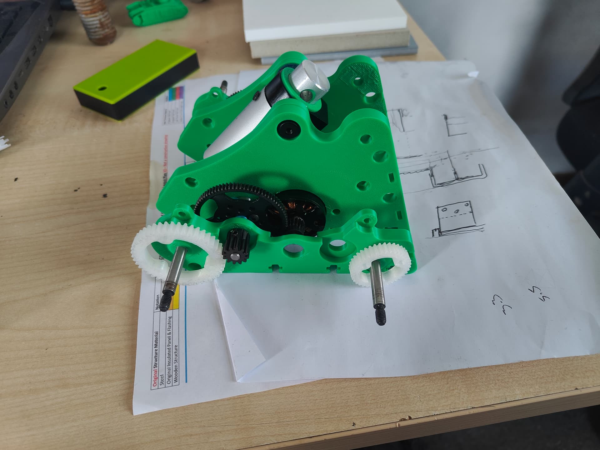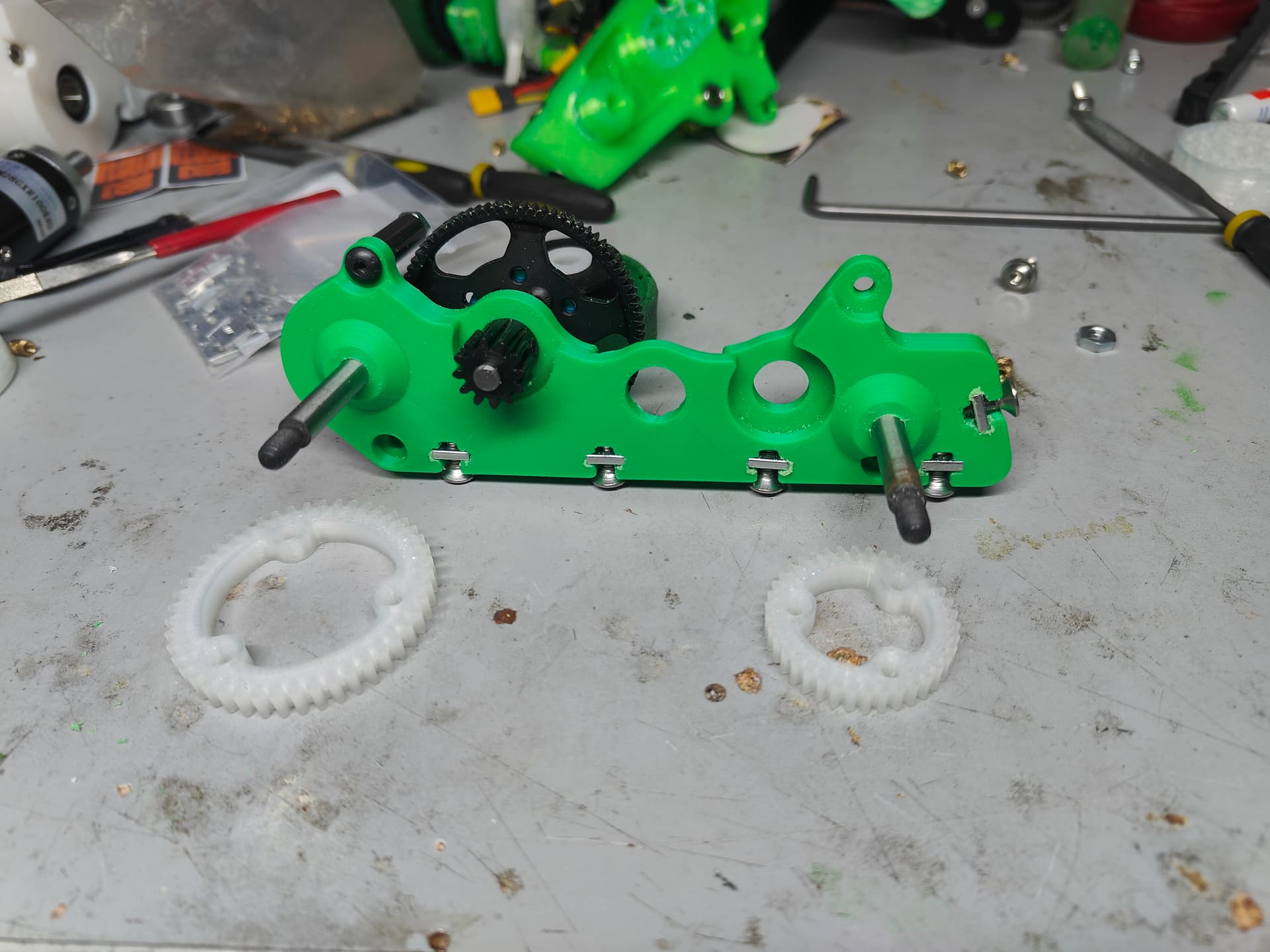 This just lashes them together and stops the gears from being able to pull away from each other. It’s free floating, only axially retained by a printed endcap that goes on the non motor side.