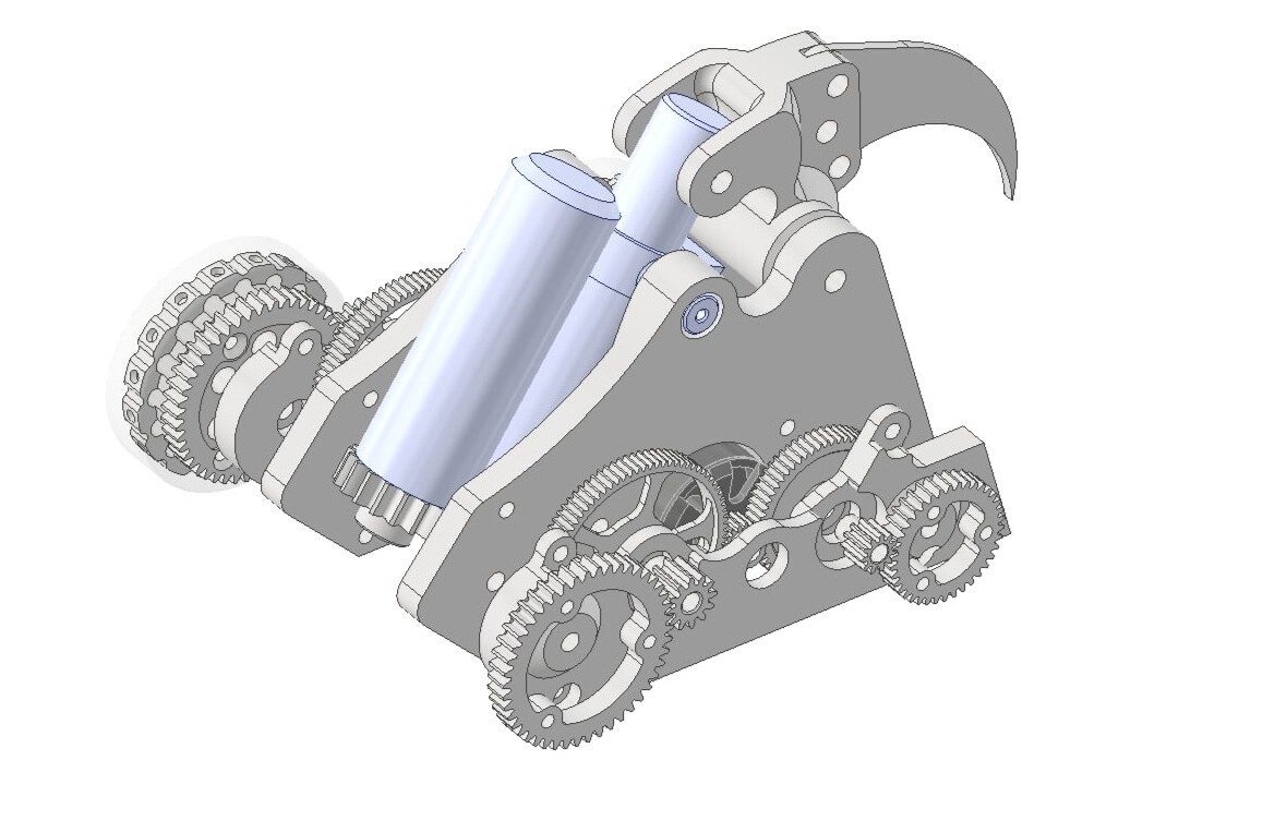 Because I forget about features until the very end of the build I had to do something slightly oddball about my locking bar and sharp edge. I think making them into one is a pretty good way of doing things but Nips is a bit of an ugly duckling to retrofit to in hindsight. I keep kidding myself I’m getting better about it but it’s a very fundamental part of weapon design I always ignore and have to patch in as an afterthought. The blue plastic hooks in under the pivot point and folds to lock the jaw against the frame, then a 5mm pin (or Allen key) holds the whole lot solidly to the robot. To remove you pull the pin and slide the blue part up and out by pulling it upwards and away from the robot.
