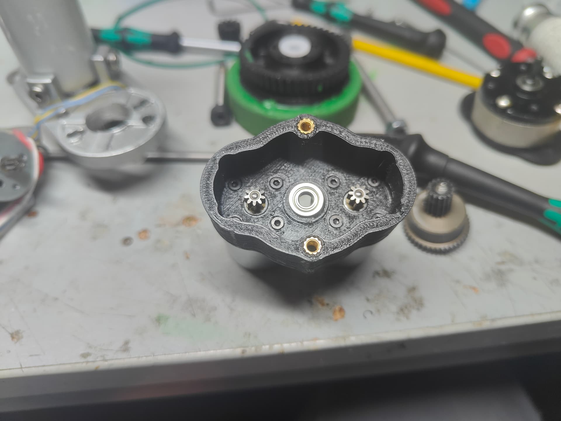 Feels much better like this - though it’s a strange solution that a problem that shouldn’t exist. Now that I know I can print something rigid and strong enough I would do things differently. I would jettison the aluminium ‘bridge’ and make one out of CF nylon that has the geometry I want and a better PCD and I could properly put a transfer case together.