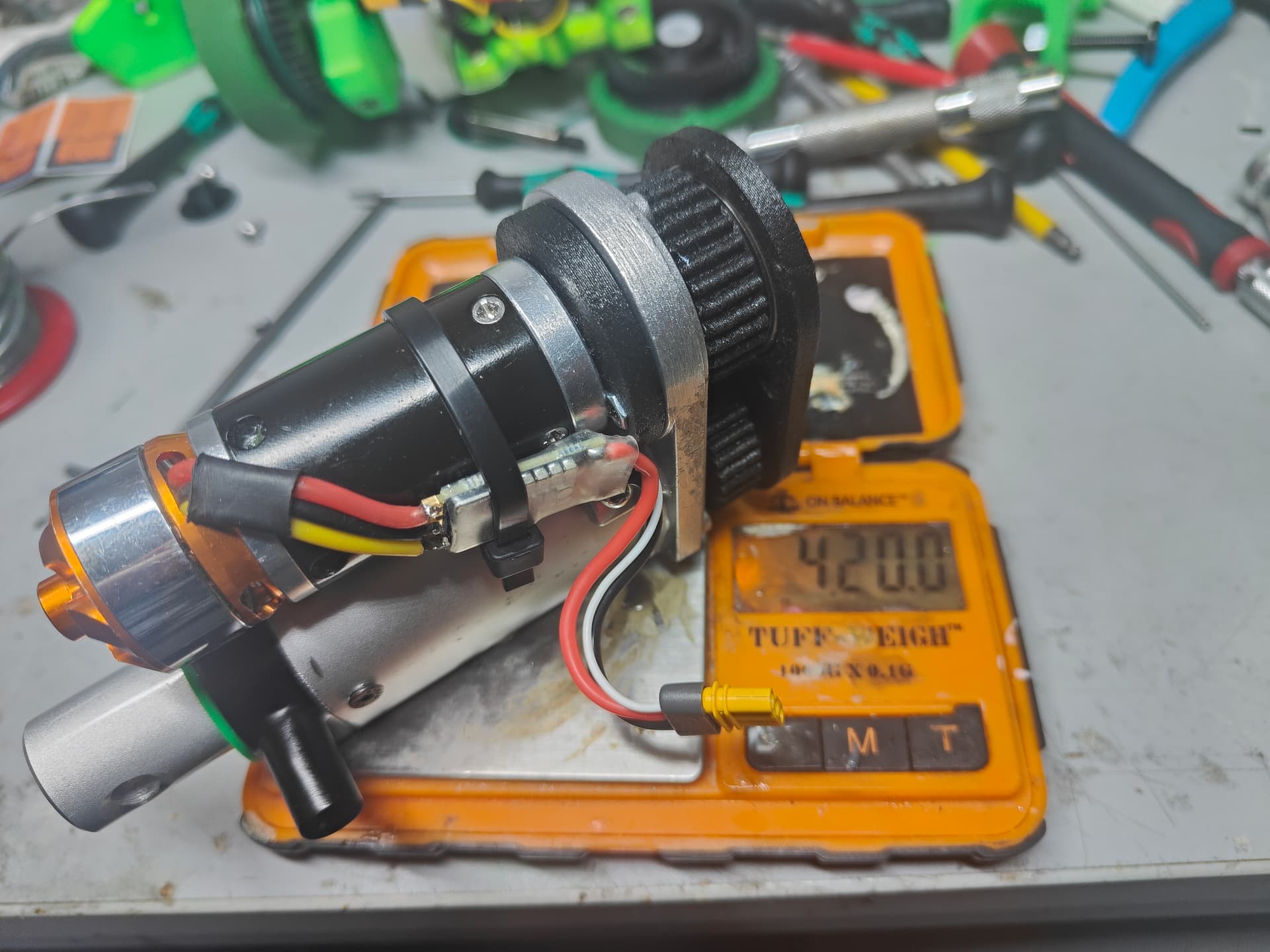 Amusingly and completely accidentally the two options are within 0.3g of each other! Couldn’t have done that if I tried. The brushless one is much more powerful from a gut feeling perspective and the fact there is no limiting involved. I was hesitant to put it in, despite it being the better option mostly because it didn’t have any endstops or anything to save itself electronically either.