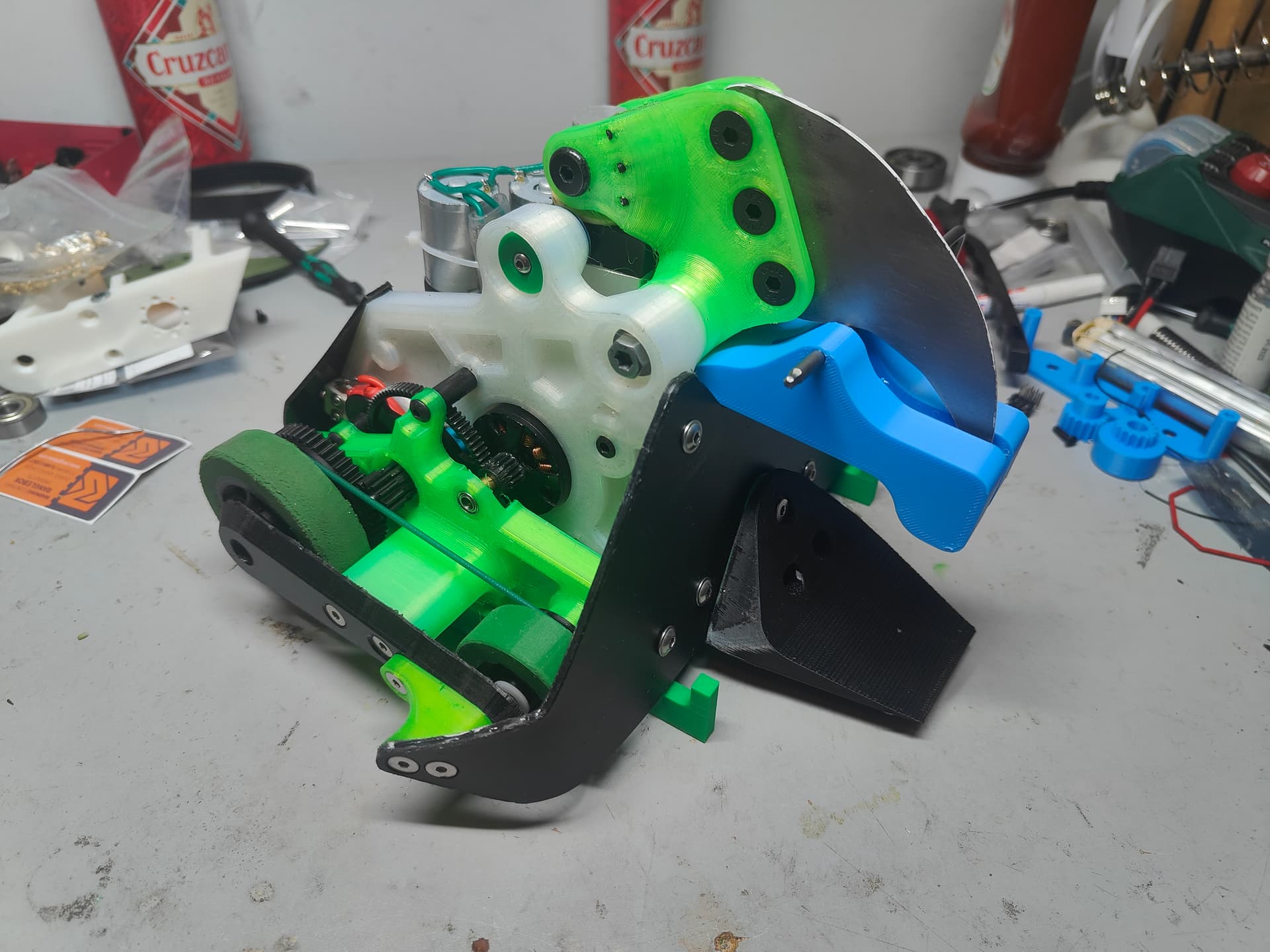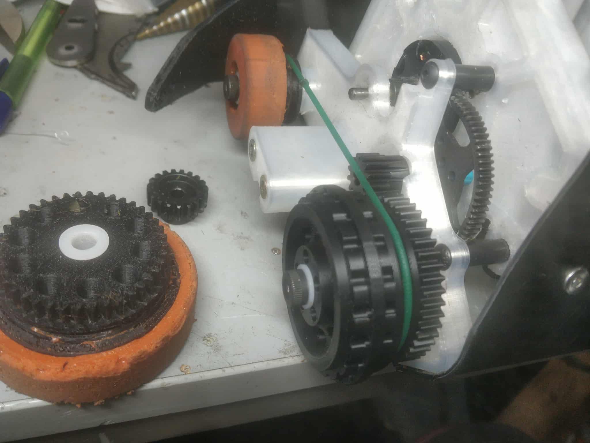 Outside the competition the drive was fantastic. I think operator error killed any potential it has but it sure has legs (wheels) and I will be keeping that style going forward. It might be a weight distribution thing not helping either or traction. Honestly I need to sink those hours in to find out. PLA worked great for the gears but not so much for the cores. Will go back to ABS or go down another avenue entirely