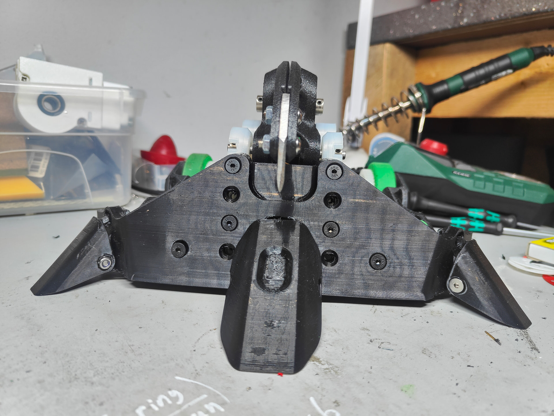 I did make a new trigger assembly though, with a more progressive spring ramp in the forwards direction and (I think, it’s been a while) I tweaked the mid point so that you get more trigger travel in the forwards direction, it’s now about 75% of the total range of motion. Also a hoop trigger rather than the weird triangle one it comes with and which my sausage fingers kept slipping out of. If you want the CAD let me know, it’s a drop in replacement (same spring even) and I do think it’s a big improvement over the feel of the stock trigger!