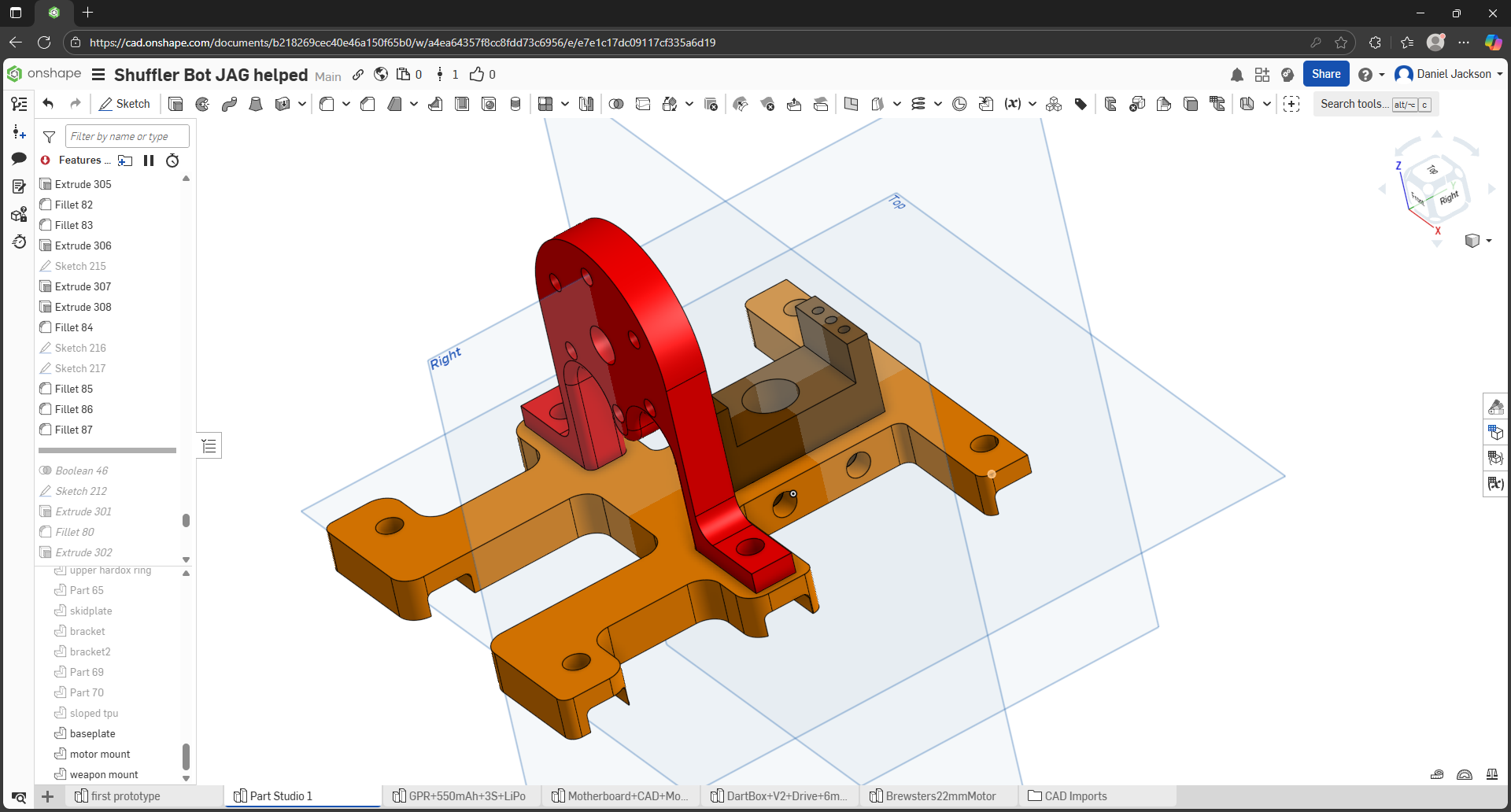 Apologies for going a little radio silent for quite a while there… damn you Autism… but I’ve been wracking my brain for quite some time to try and get a decent solution to how I was going to get the weapon mount and the motor mount to even connect to the baseplate… and the solution? Just jigsaw and bolt it together. What’s not shown is that the red motor mount and the brown weapon mount go through the orange baseplate, with each corner of both mounts and cut-outs having a 2mm chamfer to round it out. The red weapon mount will be held in place by the same bolts that hold the baseplate down, and the brown weapon mount will be held by two bolt as well, to keep things in place.