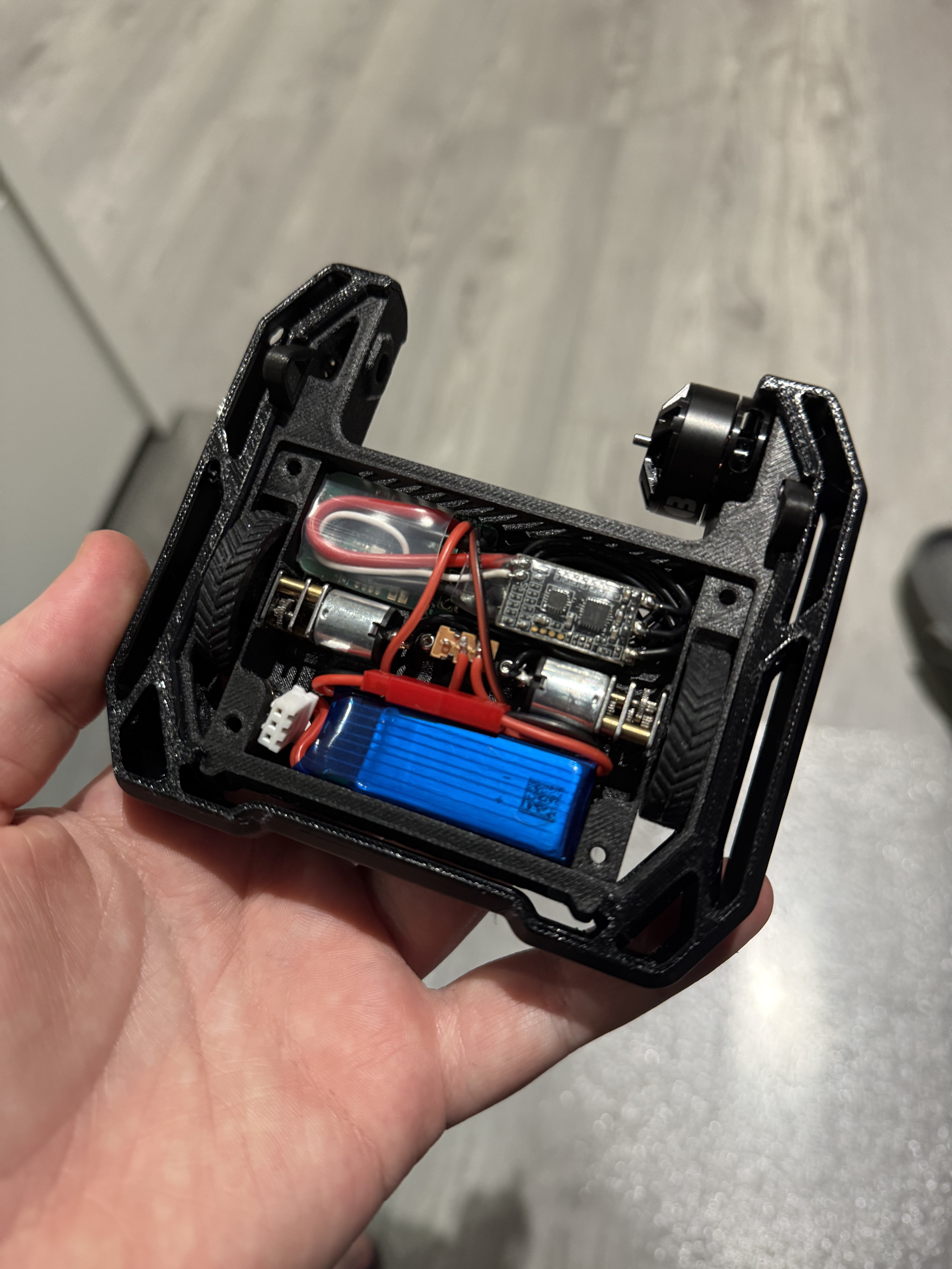 Have fully built and tested the bot as a whole now, made a lot of tweaks across the board for clearances and just some general optimisations. Only thing left to do is order titanium parts now I’m happy with how everything fits together. Was pleasently surprised how long it lasts on the 300mAh lipo.