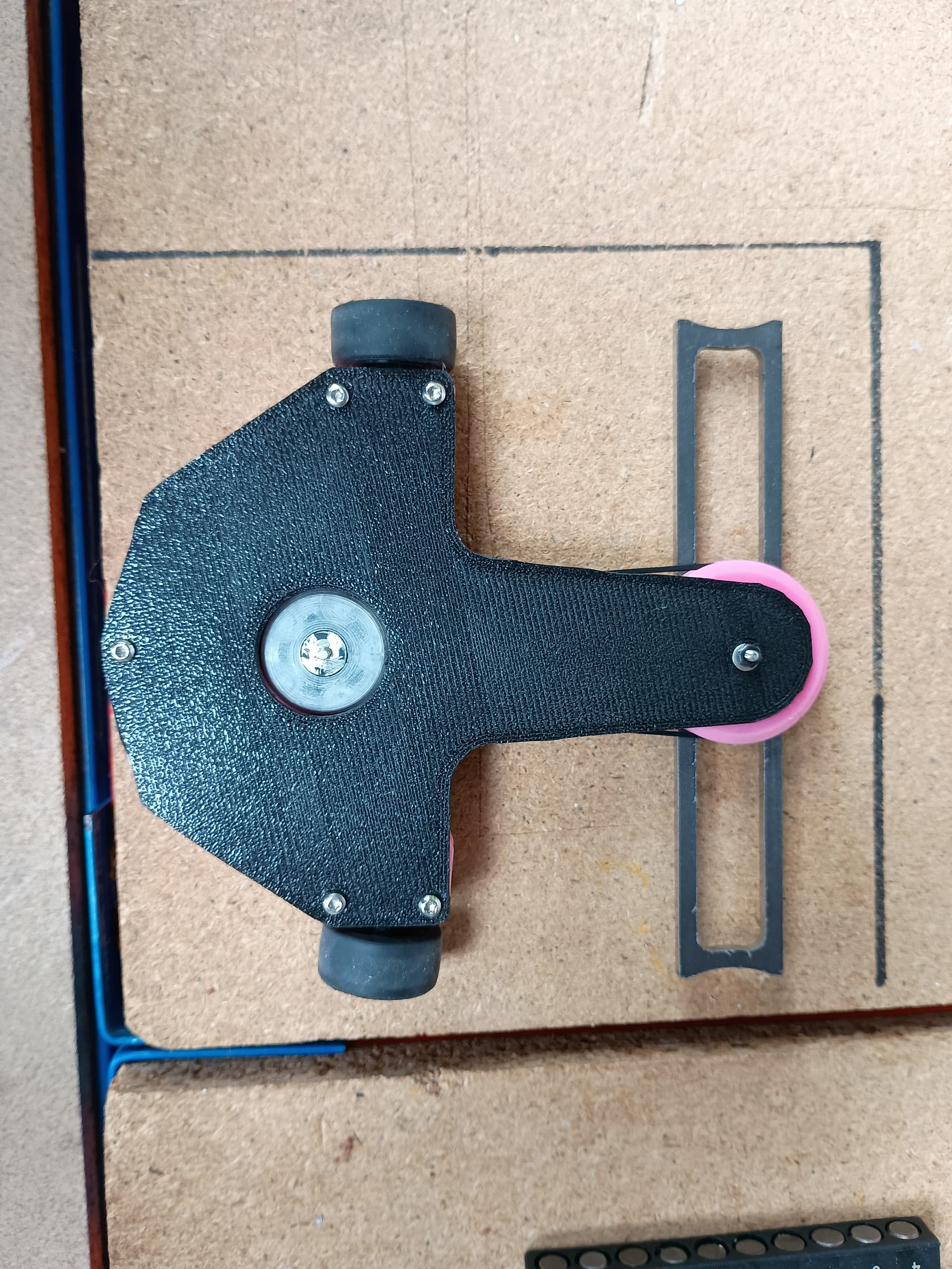 There’s been a few revisions, but I’d say we’re still at V1.3 rather than a true V2. Initial changes were to lose the wheel hoods as they were a faff to print, and didn’t add to anything other than adding biting points. Also fairly important to fix was the fact it didn’t drive inverted, initially I tried shifting the wheel position, but got stuck trying to work around the 20mm wheel diameter.