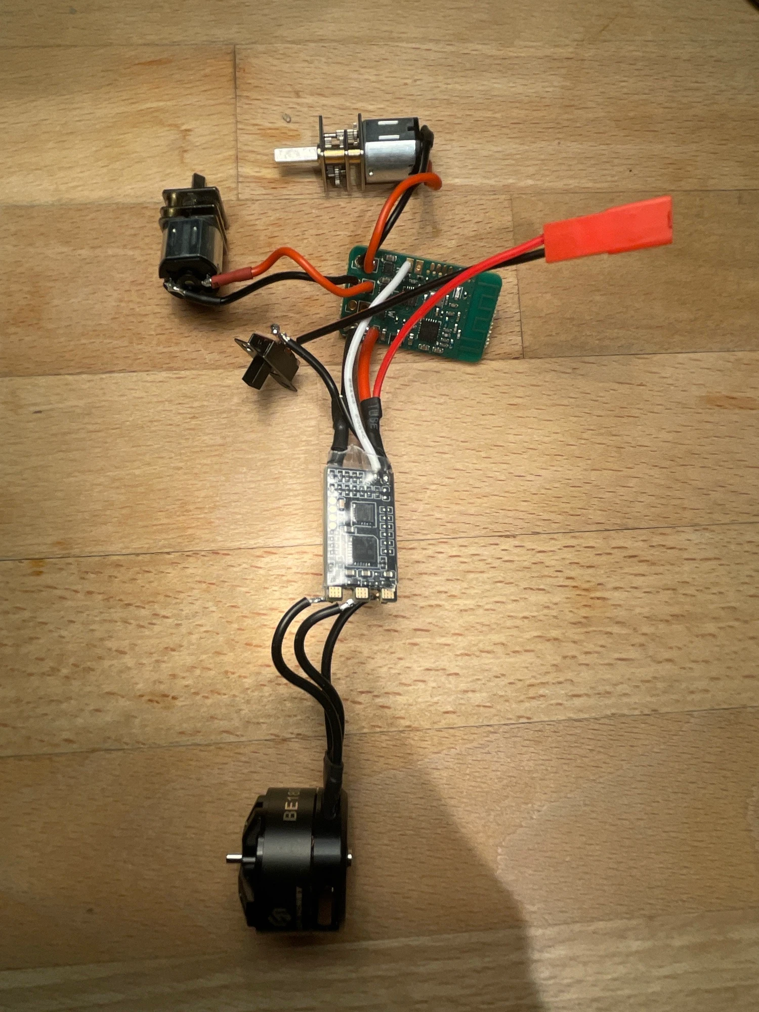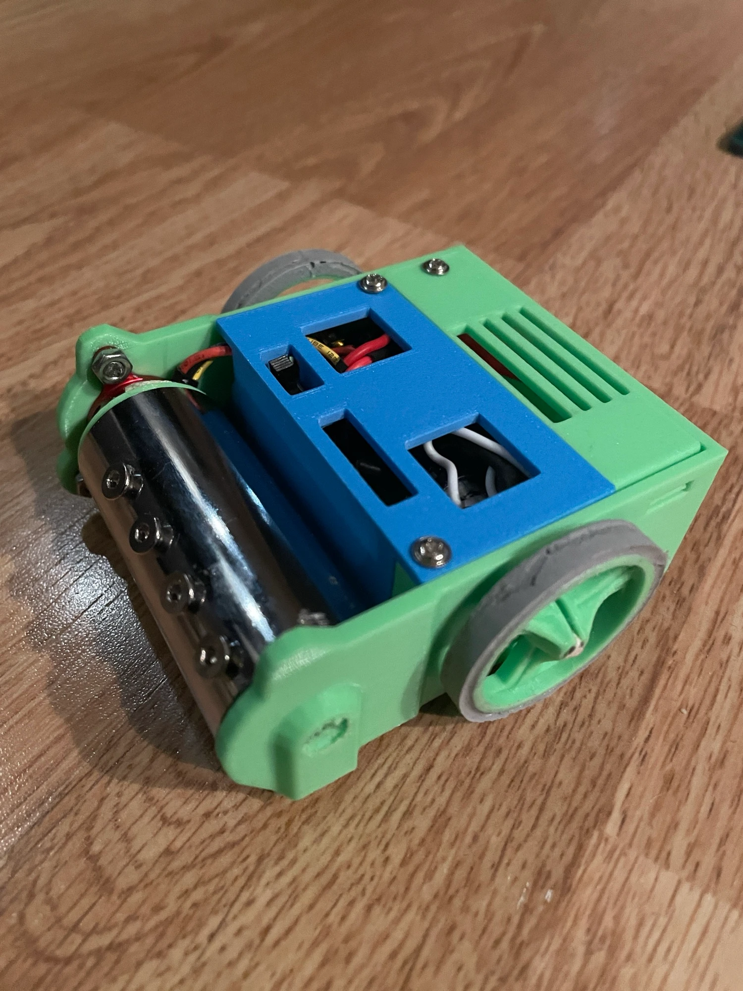 The prototype was fun to drive, but hopelessly unbalanced. Also, this particular make and brand of motor went out of stock, so when it breaks there is no replacement.
