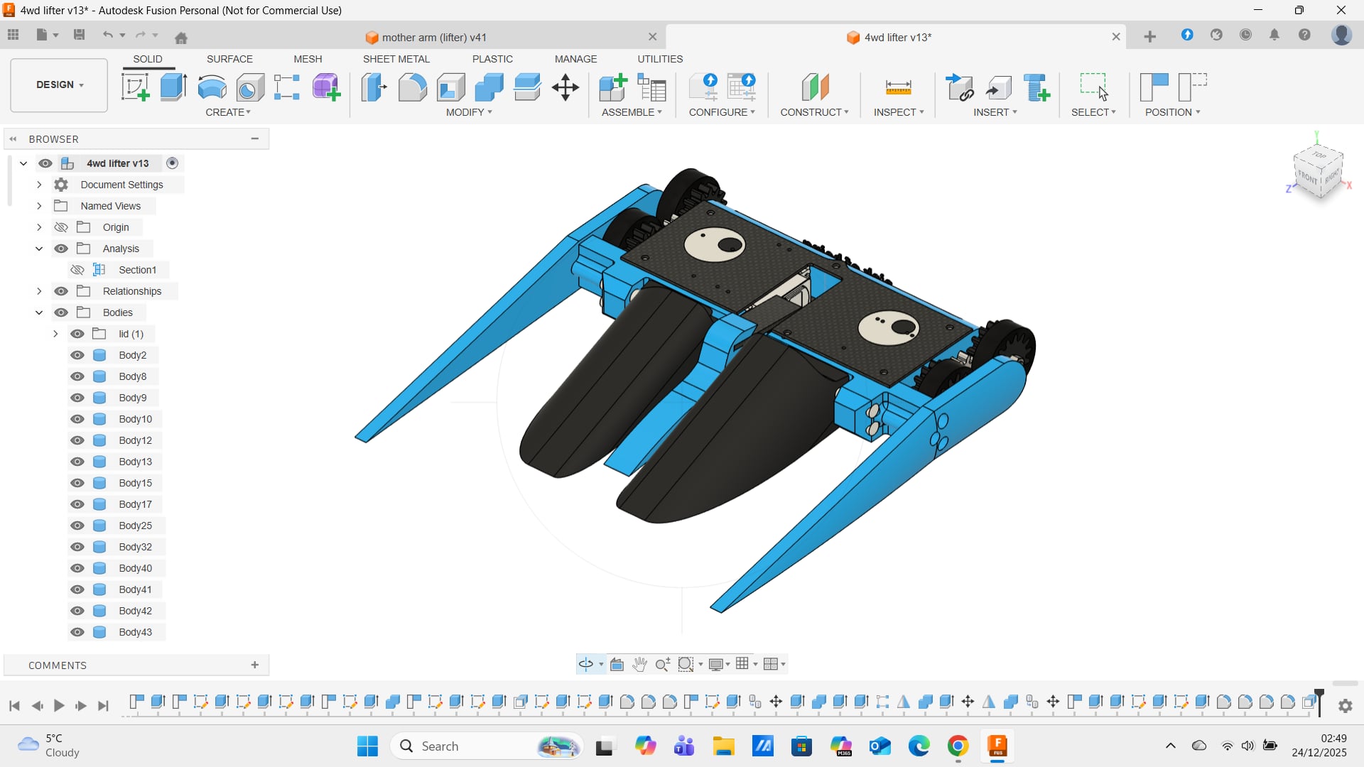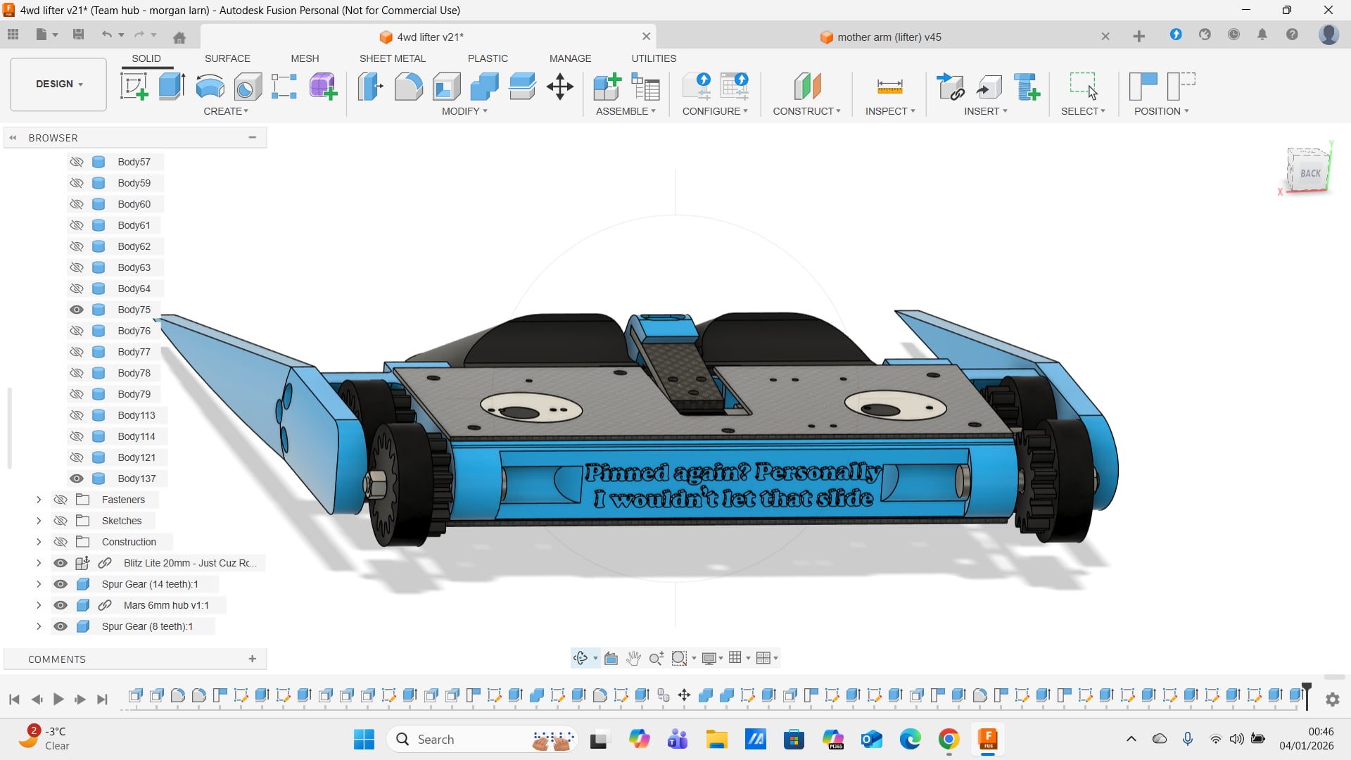 however with my printer running low on filament and time also running short (like 1 week away from the comp) it was time to build the second bot