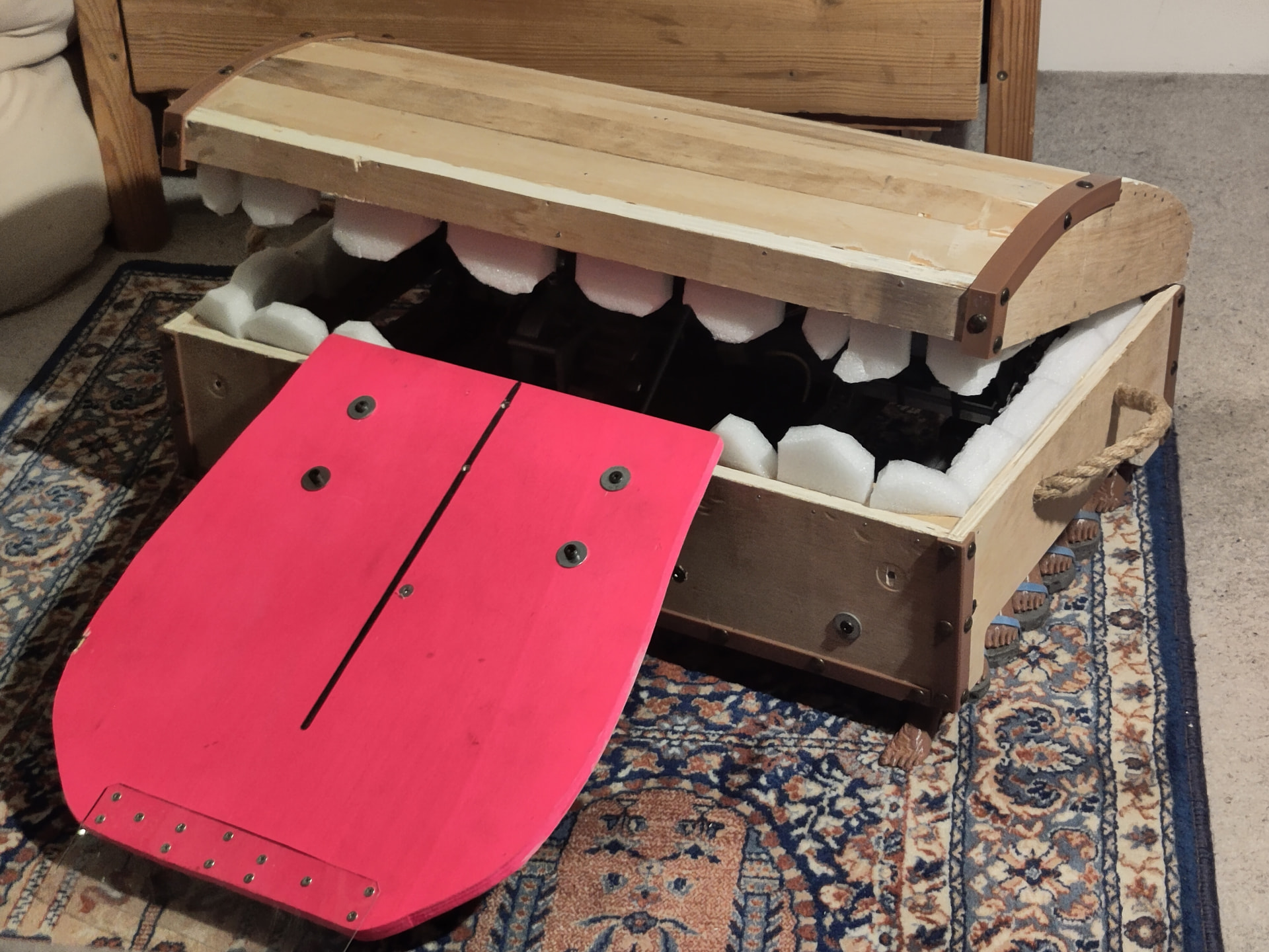 The chassis is built from approximately 80% of the 22mm Flexlink extrusion, corner brackets, and slot nuts I pulled from the metal skip at my previous employment. The chest is all 12mm plywood and wood glue, so it’s basically carbon fibre.